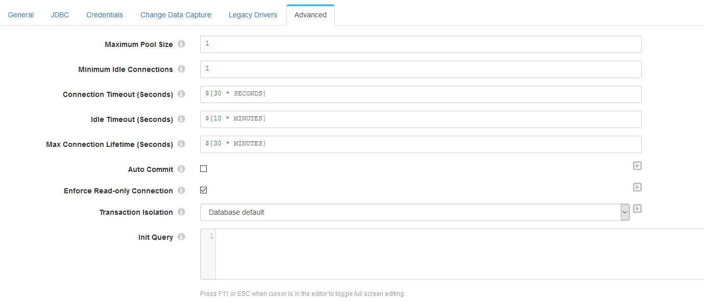 所有数据已成功同步完成。随后发现与时间相关的create_at和update_at字段存在偏差。这些字段的时间戳较MySQL数据库少显示了8个小时。此前我们也曾遇到过类似情况。当时为了解决这一问题曾对SS的一个Java Class Library进行了源代码更新。然而这次并未采用传统的技术手段而是转向在网络上搜索新的解决方案。在JDBC Query Consumer阶段,在JDBC配置选项卡下继续设置参数时,并在附加的Jdbc配置属性中新增了两个设置
