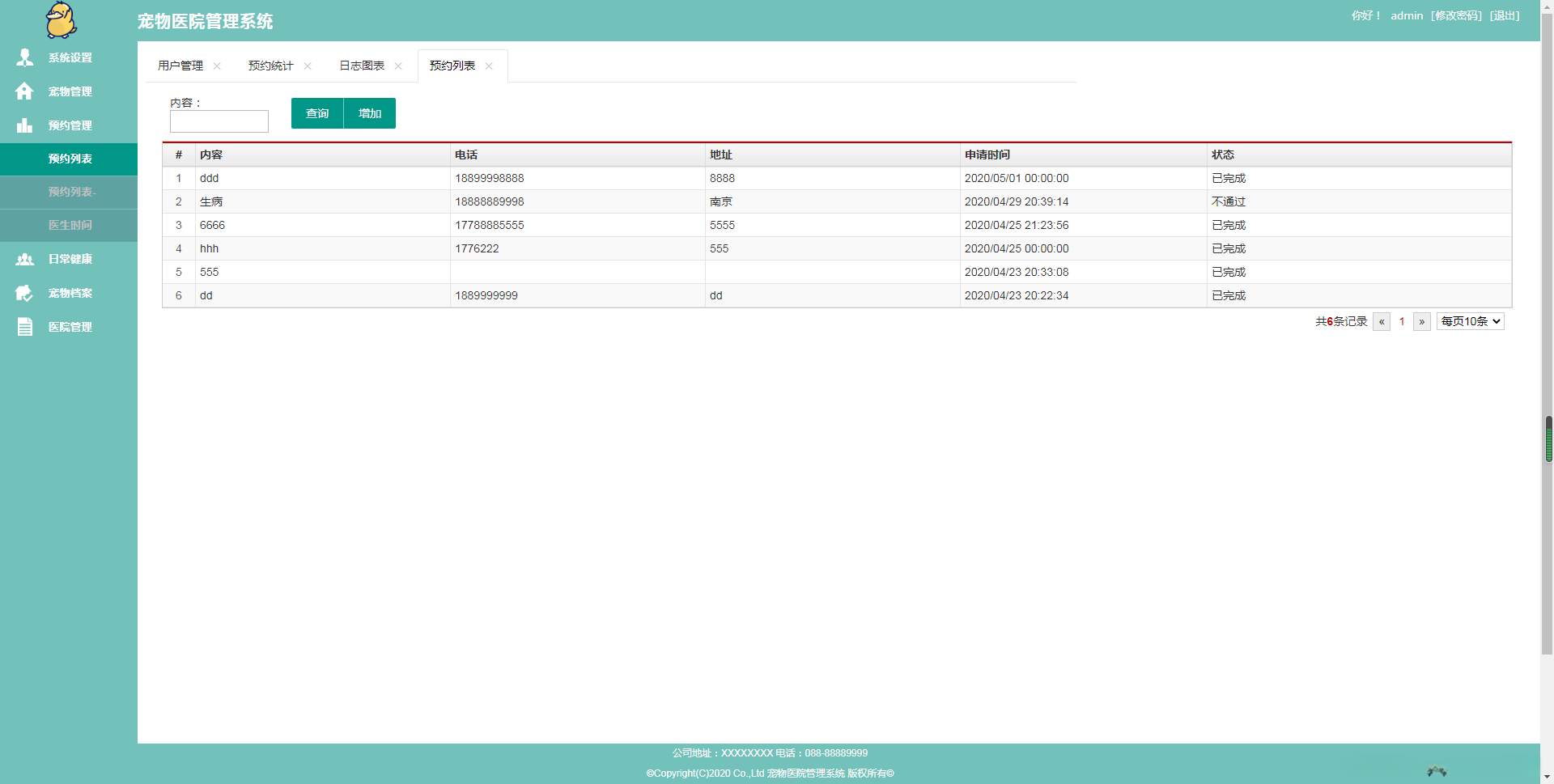 系统主要支撑功能实现, 包括系统层面的管理与操作, 具体涉及用户管理模块, 页面管理模块, 角色管理模块等核心业务功能. 系统还包含宠物档案列表, 宠物健康记录, 医疗安排时间表等相关服务. 整个系统的开发基于Springoot mybatis框架完成.