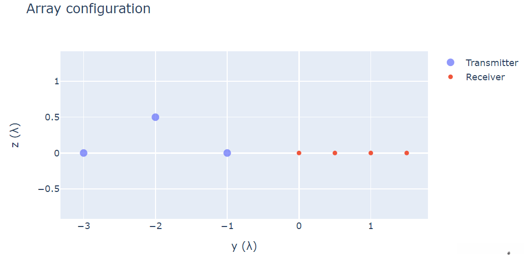 借鉴以下关于天线阵列布局设置的研究成果,在虚拟化的天线组别位置进行仿真配置。由四个天线单元构成的接收器阵列采用了λ/2间距