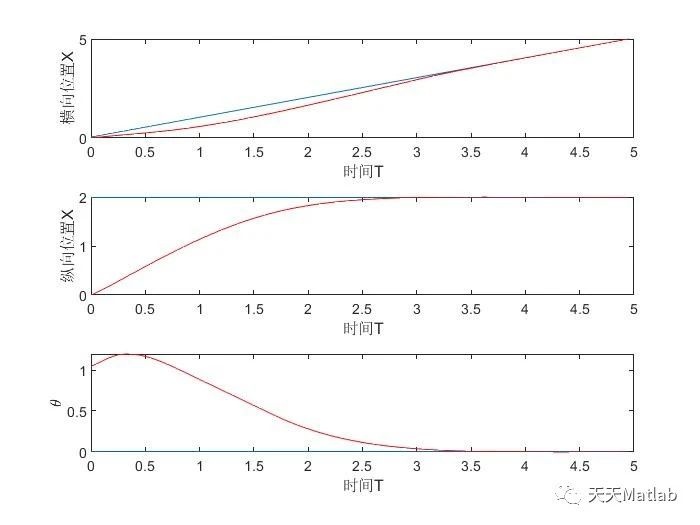 clc;clear;%%%参考轨迹生成N = 100; %参考轨迹点数量T = 0.05; %采样周期Xout = zeros(N,3);Tout = zeros(N,1);for k = 1:1:N Xout(k,1) = k*T; %参考x坐标 Xout(k,2) = 2; %参考y坐标 Xout(k,3) = 0; %参考航向角 Tout(k,1) = (k-1)*T; %第k个参考点时刻end%%%控制系统基本情况介绍Nx = 3; %状态量个数Nu = 2; %控制量个数[Nr,Nc] = size(Xout); %Nr=100,N