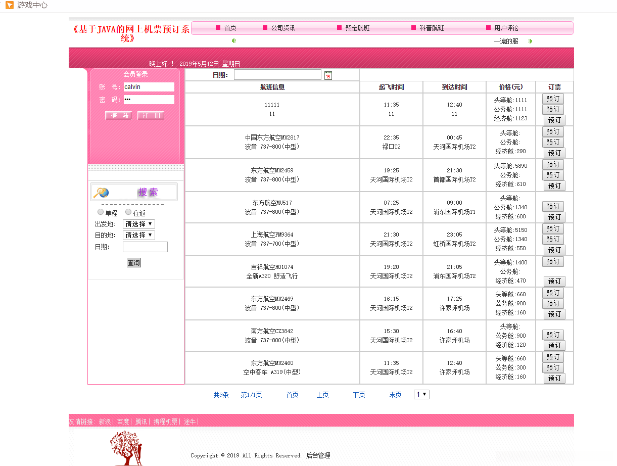 JAVAweb JSP飞机订票系统航空机票预订销售系统(机票预订系统)网上机票预订飞机订票