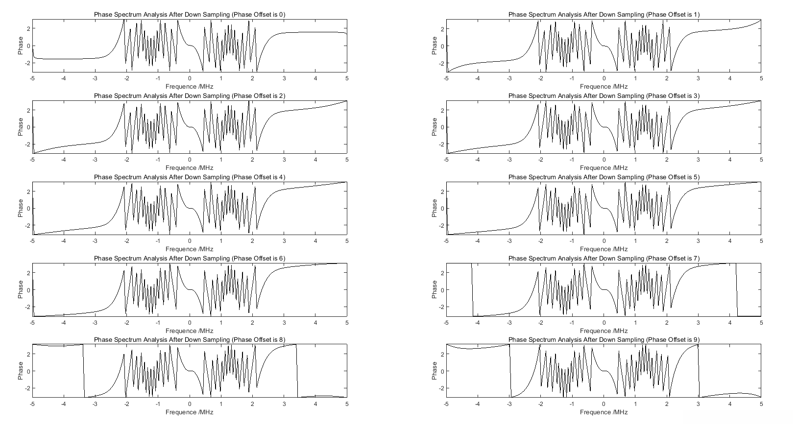 > 138. title('Phase Spectrum Analysis After Down Sampling')
