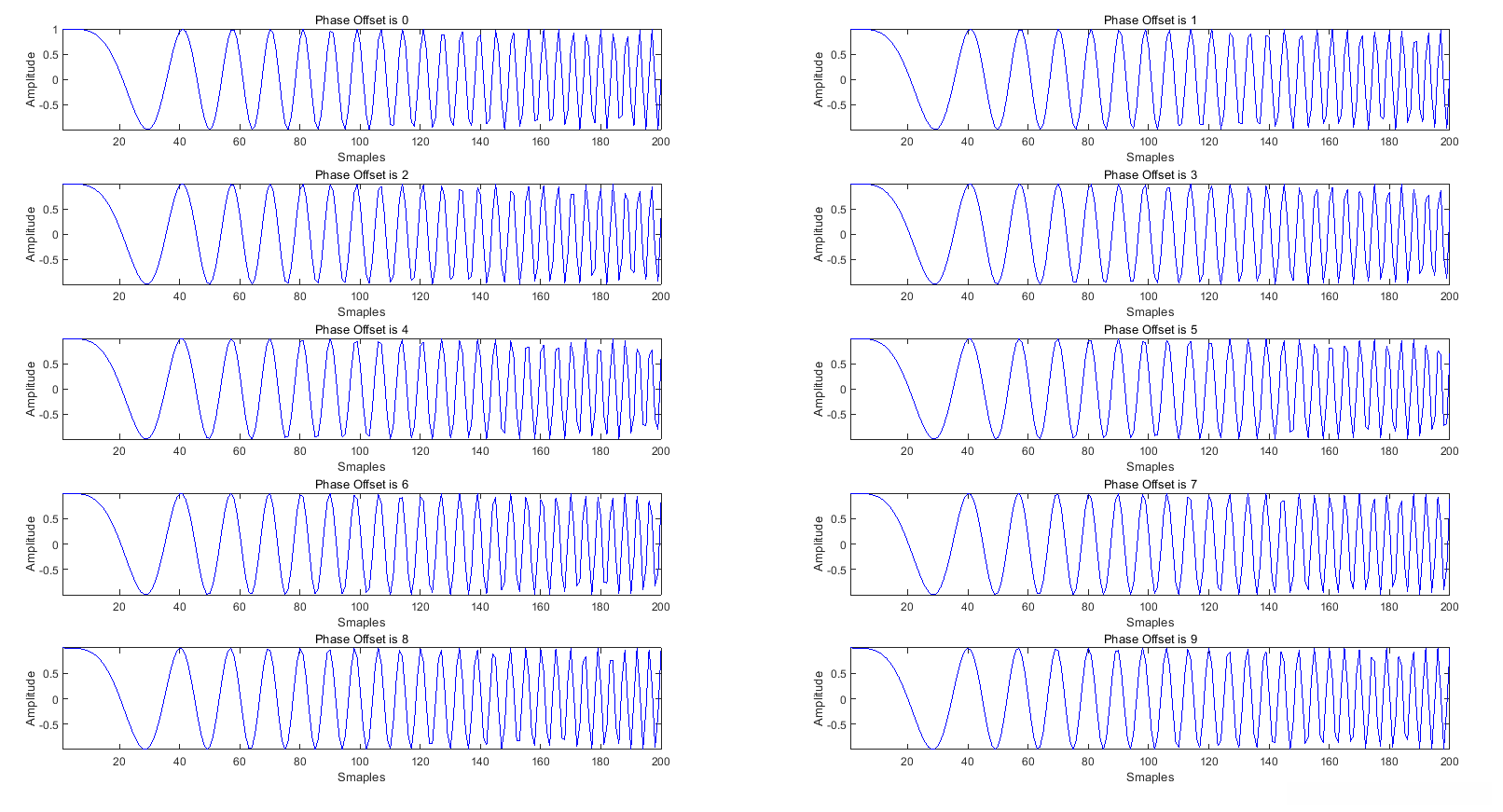 > 61. title(['Phase Offset is ',num2str(i-1)])