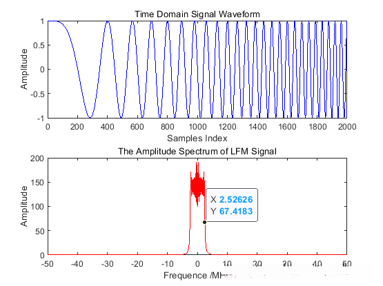 > 44. title('The Amplitude Spectrum of LFM Signal')