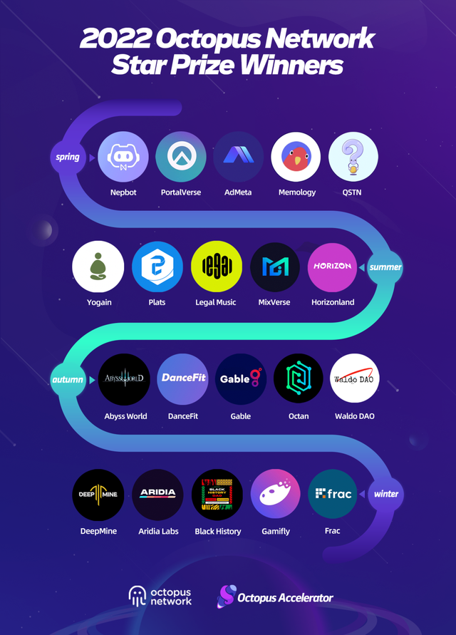 其余获奖项目正致力于加入章鱼应用链生态,并在不断地进行技术、社区及宣发方面的支持工作;这也取得了显著成效。