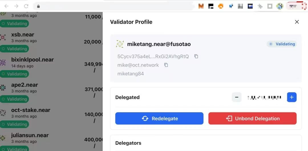 4、验证节点关联验证人 NEAR 账户,方便查看。