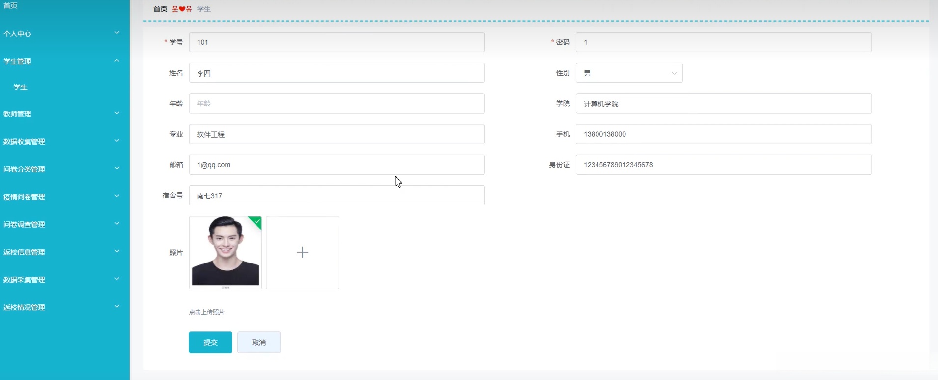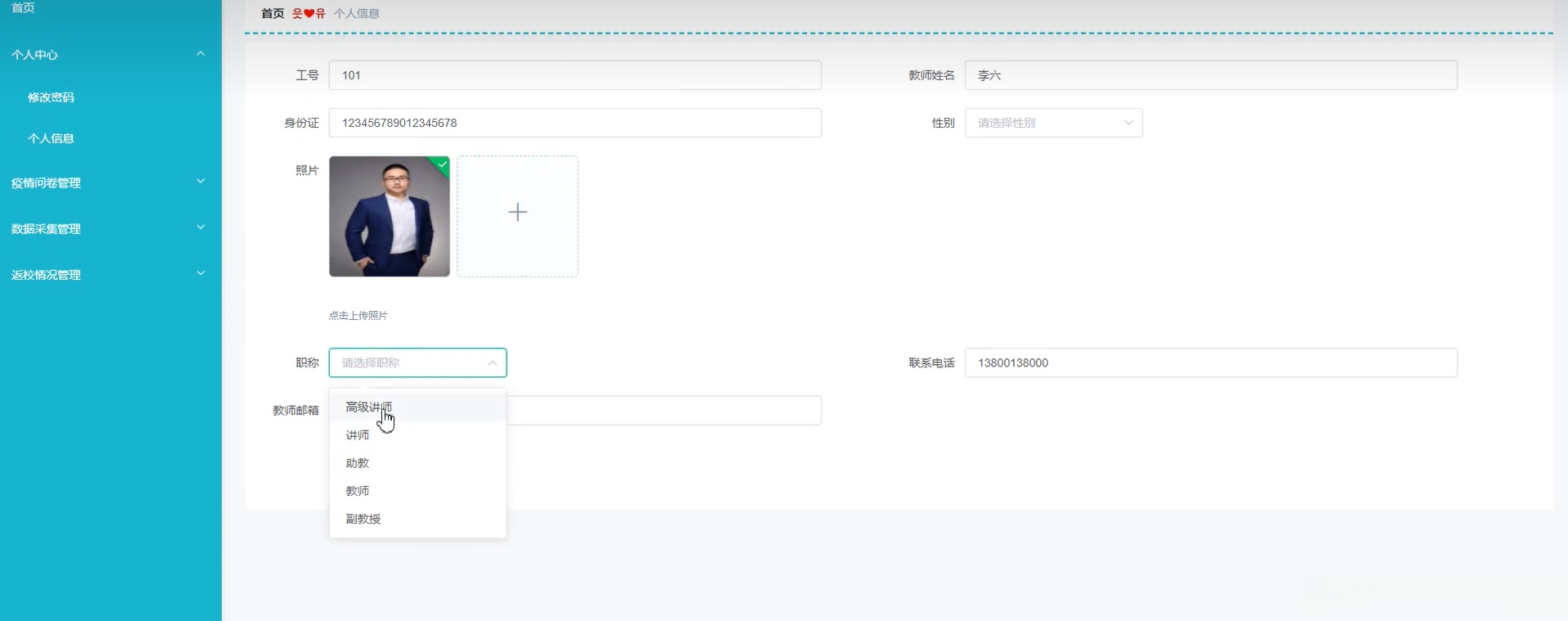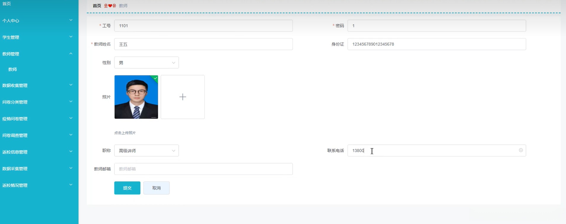 Java项目:师生健康信息管理系统(java+SpringBoot+Mybaits+Vue+elementui+mysql)