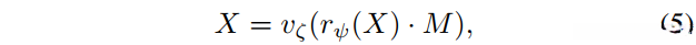 此外,在这一研究框架下,并非仅限于简单的模型设计;我们还尝试采用掩码建模技术(Mask Modeling),这一技术使得Transformer模型能够展现出显著的进步。为了实现这一目标,在研究过程中我们主要采用了近似策略(如图5所示),旨在寻找r变量的逆变换v';通过这种策略设计可以使处理后的特征得以利用稀疏特征保持足够的信息量。根据上述方法设计得到的结果形式如下: