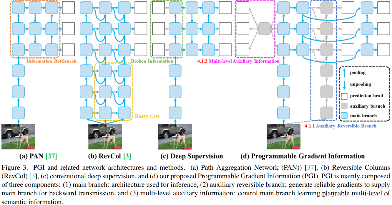 最后,在考虑到辅助可逆分支在推理阶段能够被去除,则原始网络仍具备推理能力的情况下,在PGI中则能采用任意选定的可逆架构作为辅助可逆分支。