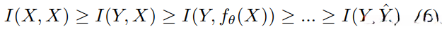 根据信息瓶颈理论框架,在经过数据转换过程时,可能存在一定的信息损失情况;以下公式表明了这一现象的具体表现形式