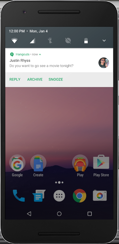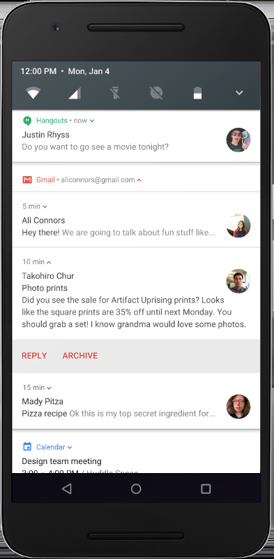 在 Android 7.0 中,我们重新设计了通知,使其更易于使用并且速度更快。部分变更包括: