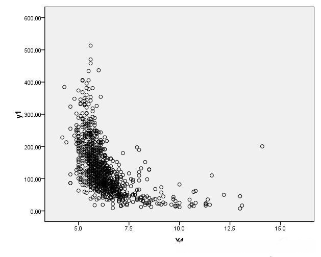 如下图,显示了一个知名博主发表的一篇文章日浏览率随着时间和被关注度之间的关系。图中使用描点的符号是空心圆 ,它有助于清楚的显示各点之间的聚集情况 。例如,在较短时间内用户的关注度分布非常密集。 当使用不同的颜色比较不同的客户组时,这种散点图尤其有用。