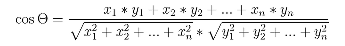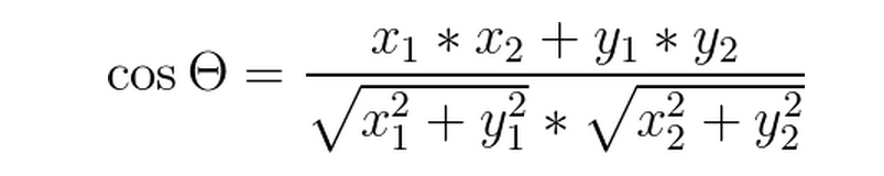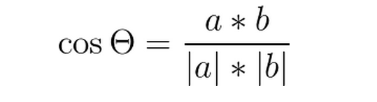 也称余弦相似度,在向量空间中通过计算两个向量之间夹角的余弦值来衡量个体间的差异程度。当两者的指向相同时,则表示它们越接近。当其夹角趋近于零时,则表明两者较为相近。为了确定两者方向的一致性,则需运用余弦定理来计算它们之间的具体角度。
