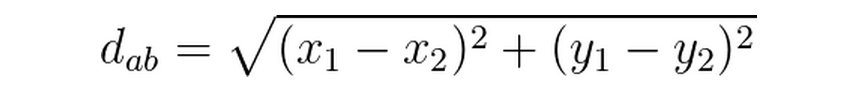 (1)二维平面上两点a(x1,y1),b(x2,y2)之间的欧式距离公式: