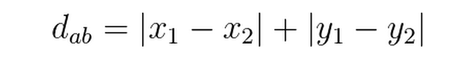(1)二维平面上两点a(x1,y1),b(x2,y2)之间的曼哈顿距离公式:
