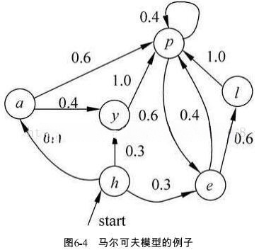 马尔科夫模型可以看做是一个转移弧上有概率的非确定的有限状态自动机:
