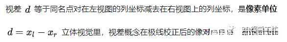 此处 𝑥 被定义为视差,在两个相机图像中被观察到的同一物点投影之间的水平间距。