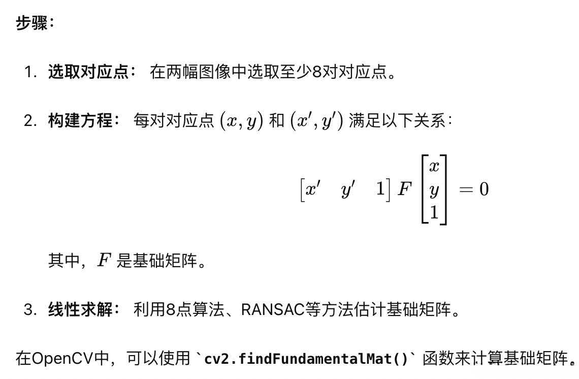 基础矩阵描述两幅图像之间的点对应关系,且不依赖于摄像机的内参数。