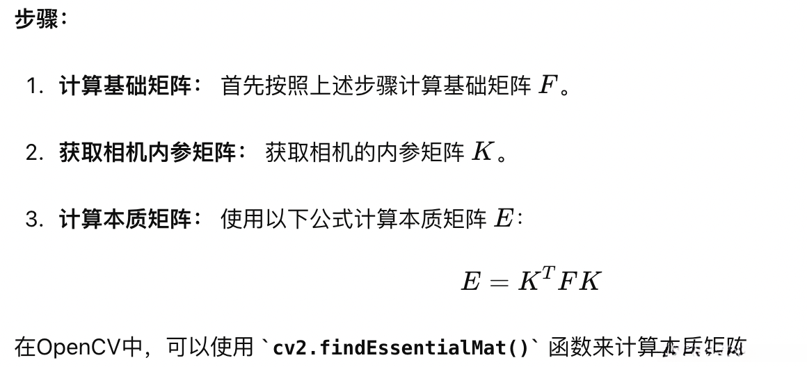 涉及并认为单应性矩阵、基础矩阵和本质矩阵是计算机视觉中的基本任务,并且特别是在多视图几何和立体视觉领域中占据重要地位。这些矩阵主要用于描述图像之间的空间关系。以下是如何计算这些矩阵的概述: