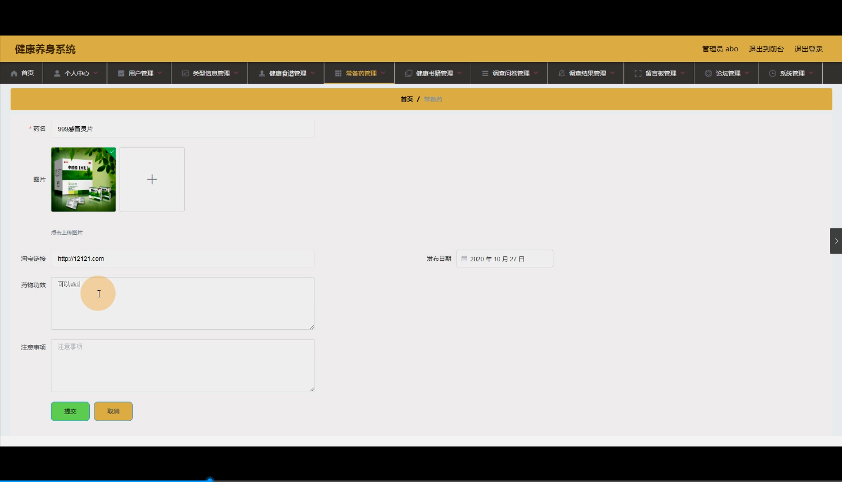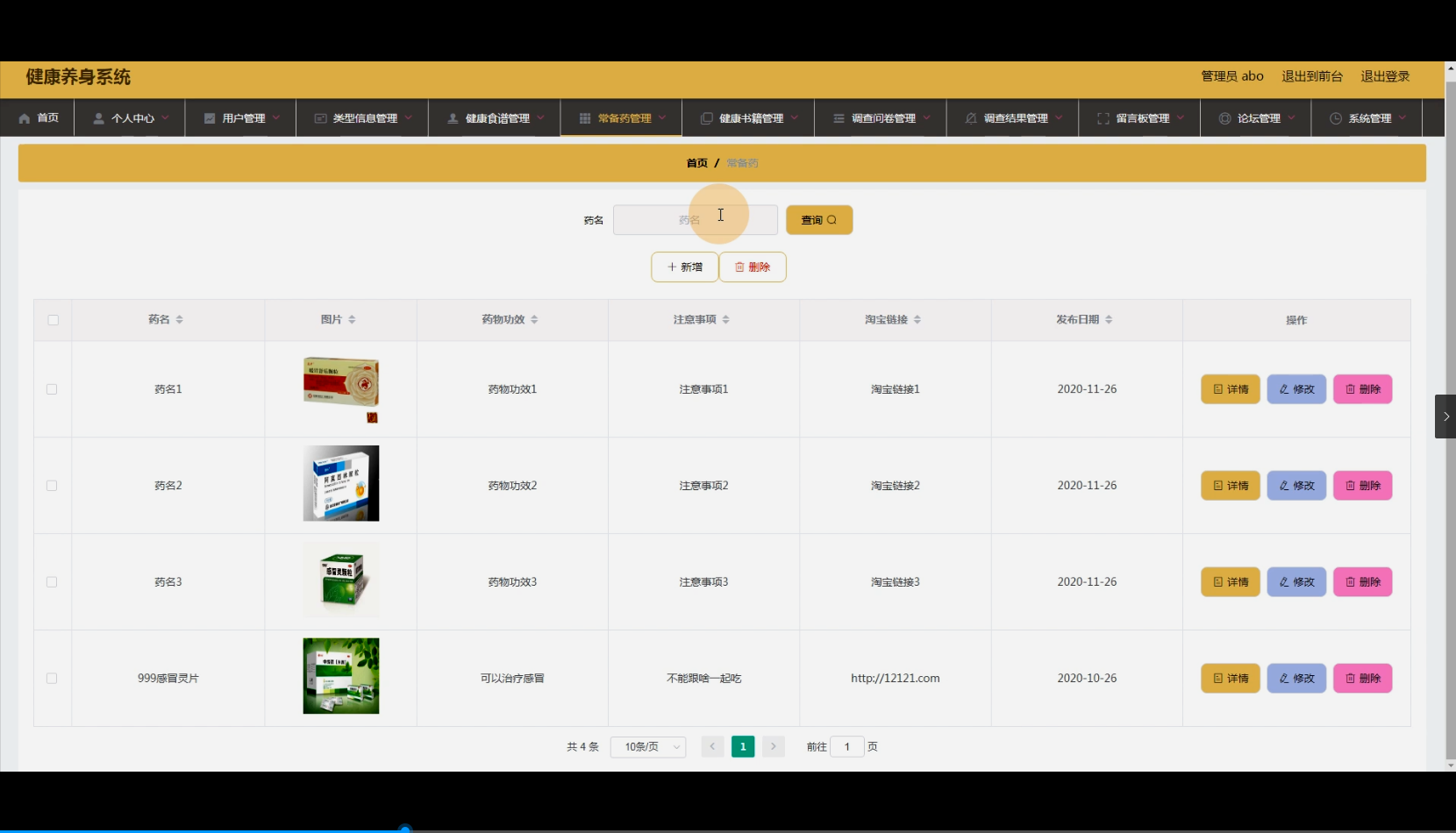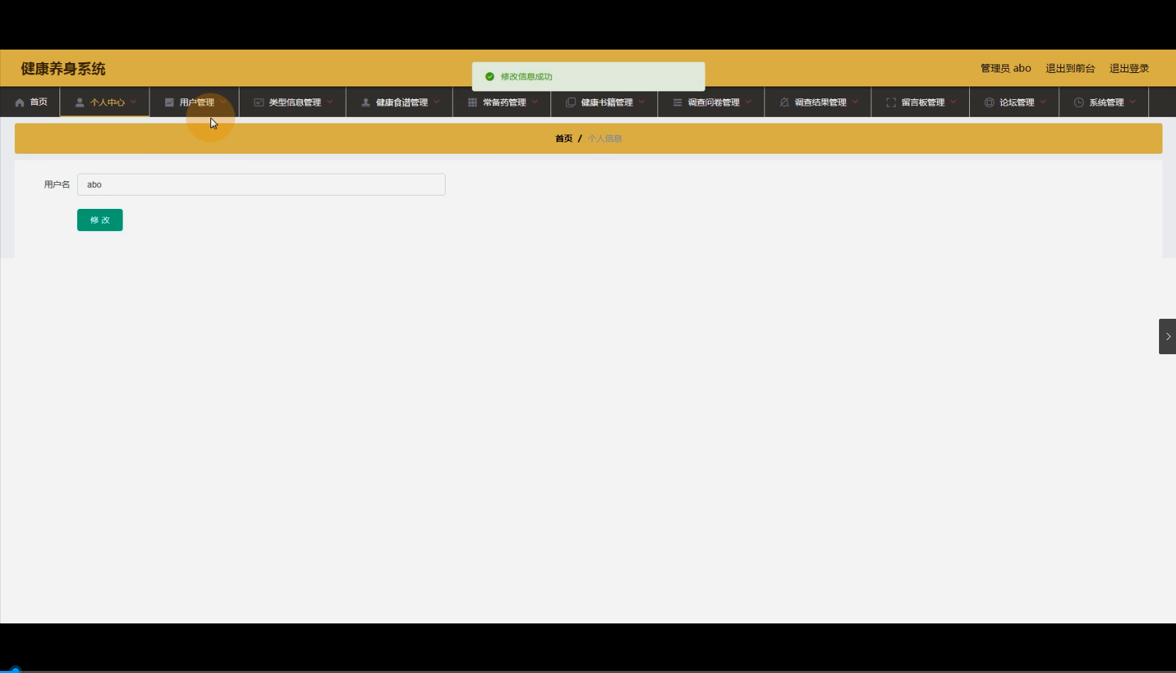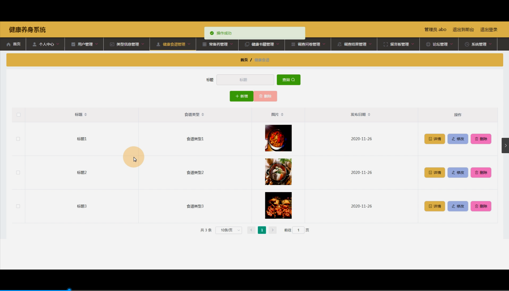 随着人们生活水平的提升,在健康管理方面的关注程度日渐提升。对健康养生系统的相关研究主要集中在养生知识普及及单一健康管理功能领域。然而针对整合多种健康养生相关要素(如用户类型信息、健康的食谱推荐、常用药品清单、专业健康管理手册等)构建系统的深入研究相对不足。因此本选题将聚焦于构建一个综合性的健康Eigen管理系统,并着重探讨如何将这些要素有机地整合到一个系统中以期深入探究提高大众健康管理效率与效果的原因及机理并提出相应的对策建议为后续更为深入的研究奠定基础