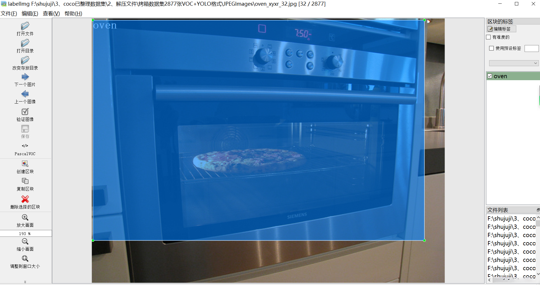 数据集的形式是包含Pascal VOC与YOLO两种格式的数据,并仅包括jpg图片及其对应的VOC xml文档与yolo标记文本。该数据集中具有以下特征:图片数量为2,877张(全部为jpg),标注信息中xml与txt标记的数量均为2,877份;单一类别;该分类的目标仅为'oven'类别;所采用的手工注释工具为labelImg软件;所遵循的手工注释规则是针对单一目标类别的矩形框绘制操作;本集合并未对参与训练模型或权重参数的具体精度作出任何承诺性保证;特别说明