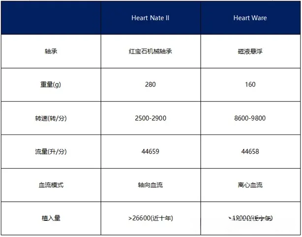 HeartmateⅡ作为HeartmateIII前代产品中的典型轴流泵代表,在采用一个轴向布置的泵体结构下实现了血液流动方向与 pump轴线平行的特点,并可在单次运转中输送6至10升的心血管液体。该设备自2005年至2018年间累计完成约2.7万例手术植入,在临床应用方面已获得FDA认证可用于BTT治疗方案,并于两年后扩展至DT2方案的应用范畴。
