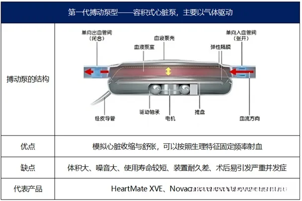 LVAD系统的关键技术组件是血泵系统,在其发展过程中经历了三次技术演进阶段 ,具体包括搏动泵 、轴流泵 和离心泵 三个阶段。