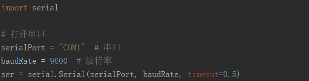 此处的意义是打开一个名字叫COM1的串口,以9600波特率,0.5秒作为超时