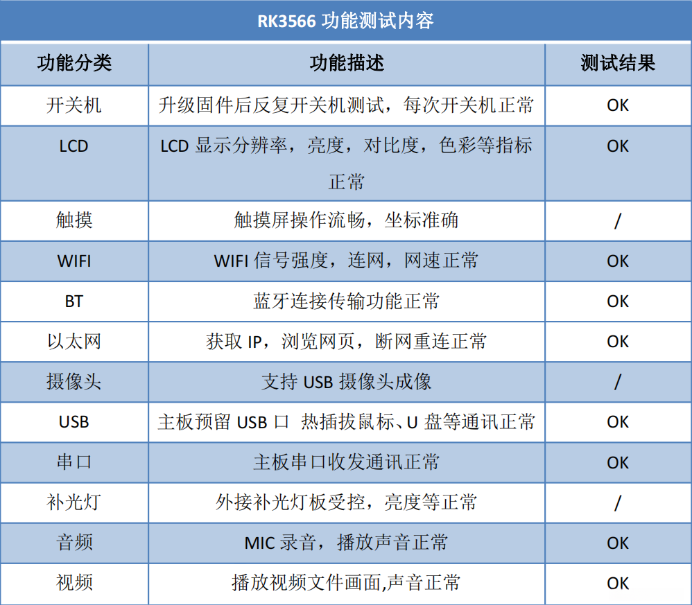 3. 测试内容:RK3566 整机,无卡顿,蓝屏,重启,死机等现象;