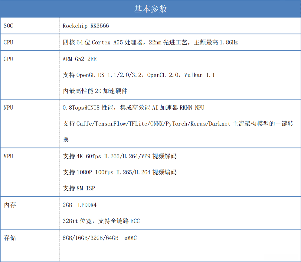 瑞芯微 RK3566 芯片,是一款专为 云电脑一体机、广告机、触摸一体机 行业应用打造的通用型 SoC。 CPU 采用 4 核 A55 架构处理器,集成 G52 图形处理器,且内置独立 NPU,算力为 0.8Tops,运行安卓 11 或 Linux 系统。