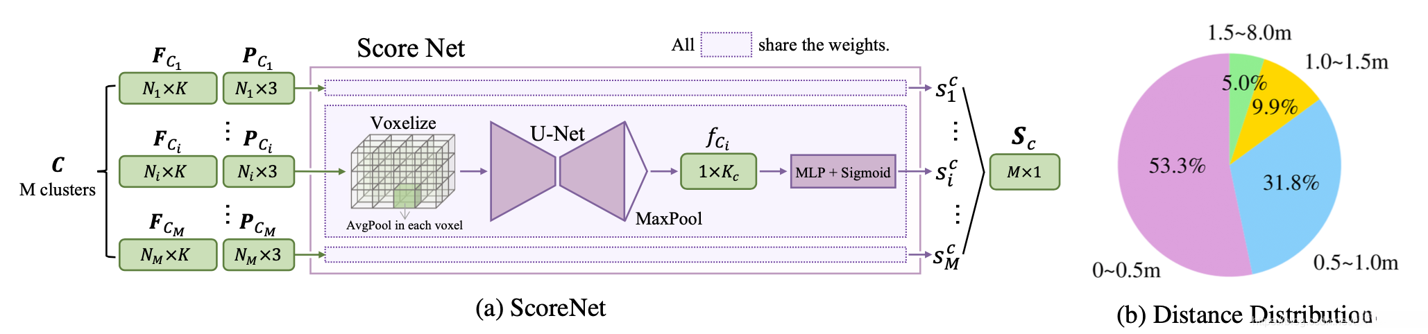 - 并集的结果通过ScoreNet评分得到M个簇的得分向量Sc(MX1)。