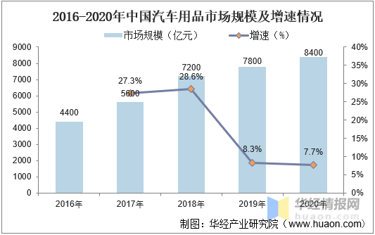 汽车用品作为汽车不可或缺的产品,几乎每辆汽车都会对其有不同程度的需求。随着我国经济的稳定增长,汽车行业的不断发展,汽车保有量逐年增加,汽车用品的需求也随之不断增加,需求的稳定增加促进了我国汽车用品行业市场规模的稳定增长。据资料显示,2020年我国汽车用品的市场规模为8400亿元,同比增长7.7%。。