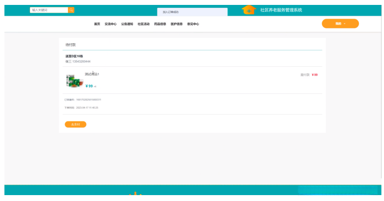 社区养老服务管理系统采用Java技术,Mysql数据库存储数据,基于Springboot框架开发。系统采用了模块化设计方法,根据用户的需求开发功能模块,方便了程序扩展维护,以便后期的更新。整个开发过程首先对系统进行需求分析,得出系统主要功能模块。接着对系统进行总体设计和详细设计。最后对系统进行了功能测试,并对测试结果进行了分析总结,得出系统的不足及需要改进的地方,为以后的系统维护提供了方便,同时也为以后开发类似系统提供了借鉴和帮助。