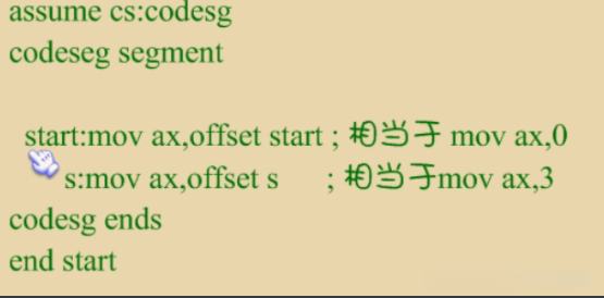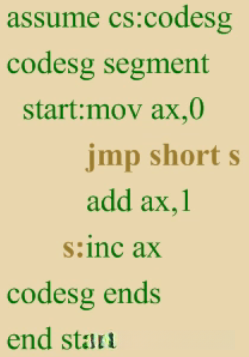 jmp指令中的标号是代码段中的标号,指明了指令要转移的目的地,转移指令结束后,CS:IP应该指向标号处的指令