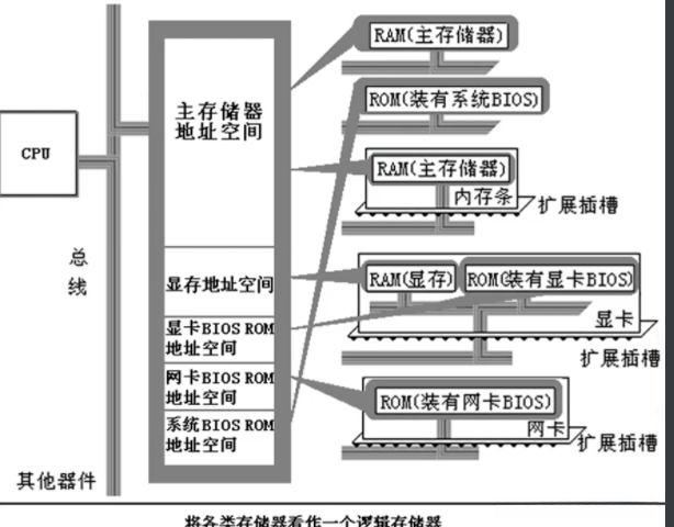 CPU将各类存储器看作一个逻辑存储器