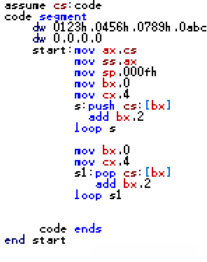 从内存单元地址处开始存放一个字,是转移的目的偏移地址