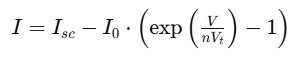 I_pv = @(V) I_sc - I_0 * (exp(V/(n*V_t)) - 1); % 光伏电流
