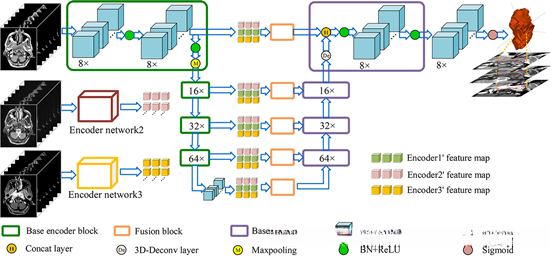- 新颖融合块。包含3D-CBAM和RFBlock。针对不同模态(T1, CET1 and T2) 的影像,可以自适应地重新校准低级特征,使之融合到具有与相应高阶特征相同通道数的特征中,保持高阶和低阶特征之间的平衡