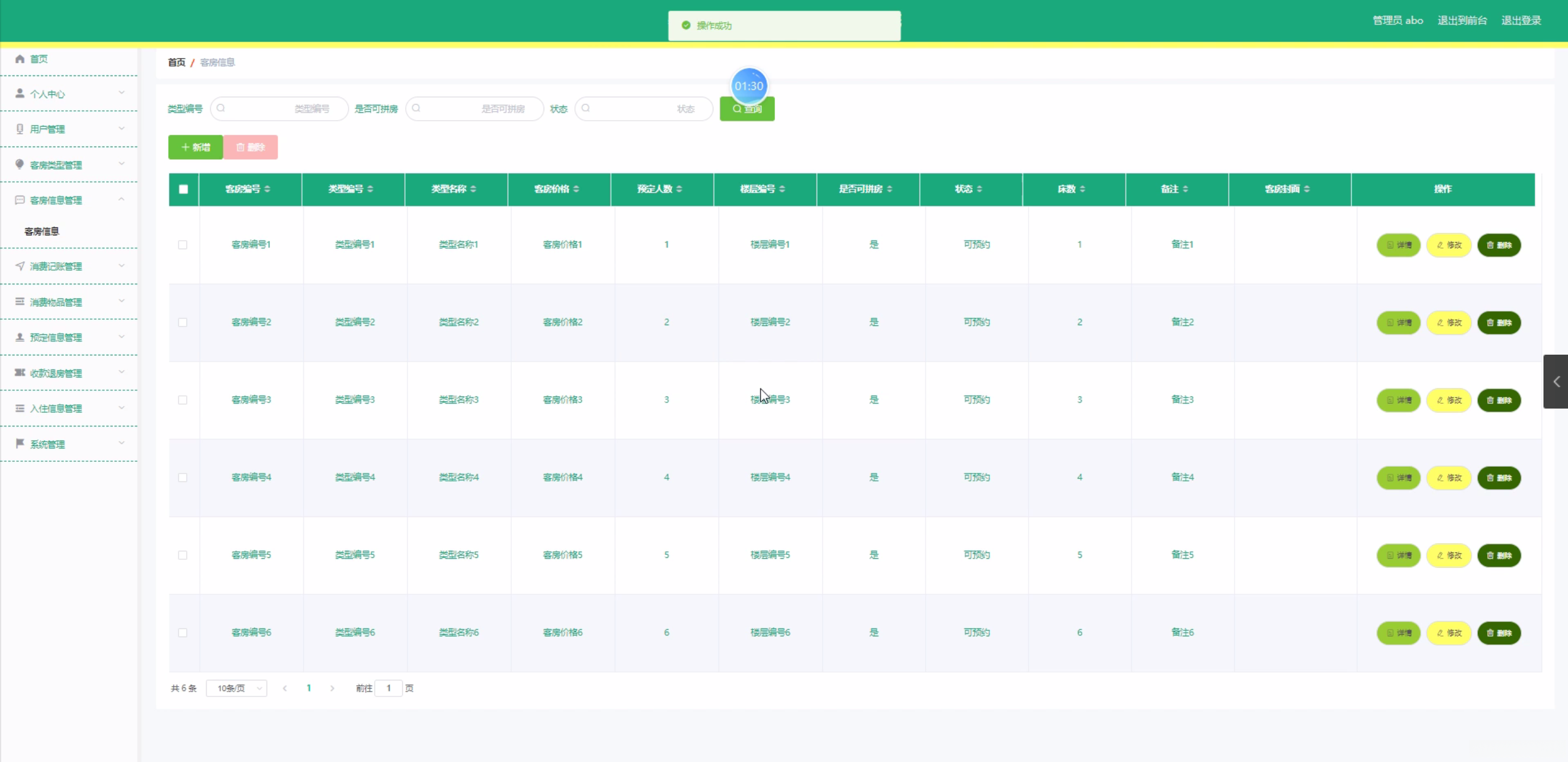 其次,在基于框架的基础上开发的智慧酒店管理系统能够显著提升酒店的安全性和可靠性。该系统借助智能监控设备实时监测酒店安全状况,并能快速识别并采取应对措施以解决潜在隐患。此外,在发生数据丢失或信息泄露风险时, 该系统依赖于先进的备份与恢复机制来保护数据安全, 防止关键信息丢失或被未经授权获取