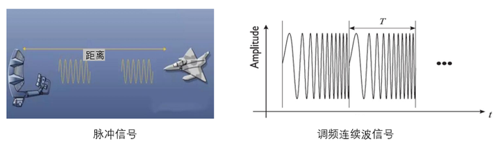 根据不同的波形类型, 可以将雷达分为脉冲式 radar 和连续式 radar. 脉冲式 radar 通过发送与接收之间的时差来计算目标距离, 但无法测得目标速度. 这一原理与激光测距技术 (LiDAR) 具有高度相似性. 在持续发射过程中, 其工作频率随时间不断调整, 并且在传输过程中始终保持连贯性, 从而形成了独特的频率调制模式.