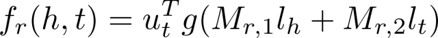 式中, ut的T次幂∈R的k次幂为关系 r 的向量化表示;g()为tanh函数; Mr∈d×k×k是一个三阶张量;Mr,1×Mr,2∈R的k次幂是通过关系r定义的两个矩阵。