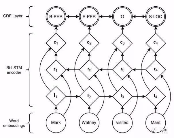 鉴于基于规则与词典实体的局限性,为具更有可扩展性,相关研究人员将机器学习中的监督学习算法用于命名实体的抽取问题上。例如文献[17]利用KNN算法与条件随机场模型,实现了对Twitter文本数据中实体的识别。单纯的监督学习算法在性能上不仅受到训练集合的限制,并且算法的准确率与召回率都不够理想。相关研究者认识到监督学习算法的制约性后,尝试将监督学习算法与规则相互结合,取得了一定的成果。例如文献[18]基于字典,使用最大熵算法在Medline论文摘要的GENIA数据集上进行了实体抽取实验,实验的准确率与召回率都在70%以上。近年来随着深度学习的兴起应用,基于深度学习的命名实体识别得到广泛应用。在文献[19],介绍了一种基于双向LSTM深度神经网络和条件随机场的识别方法,在测试数据上取得的最好的表现结果。