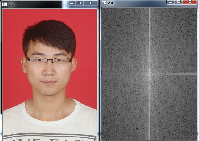Image += Scalar::all(1);//将幅度图进行尺度变换,主要的原因是幅度图太大,频率低为白点,频率高为黑点,有兴趣的可以输出图像看看效果