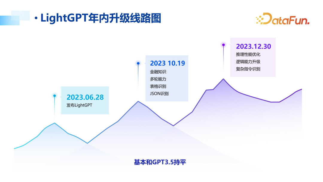 再次,为了降低推理的算力成本,2023 年 6 月实现了 LightGPT 的发布,即恒生版本的金融大模型,10 月 19 日开始公测,年底提供一些插件服务,包括推理性能的优化,以及复杂指令的逻辑能力等。