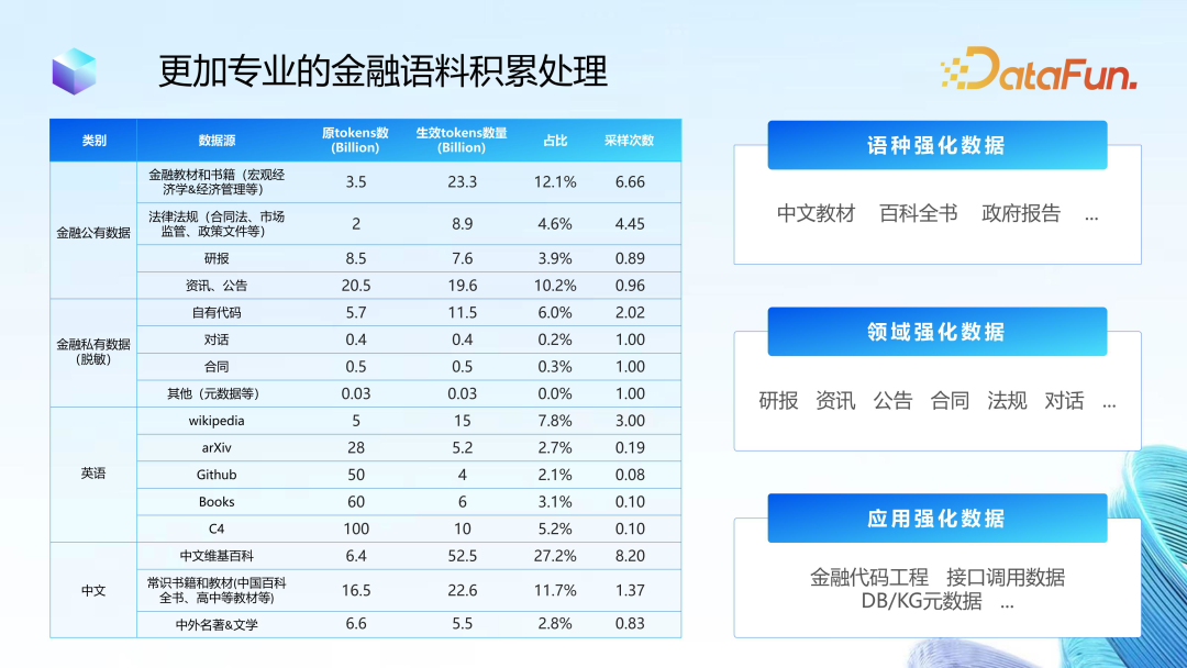 首先,金融大模型“家里有数”。所谓家里有数,一方面是金融领域有一些公开数据作为数据资产(当然,公开数据为保证其时效性,可能需要一些商业授权)。另一方面是金融机构自身的大量的私有数据、私有系统接口等。