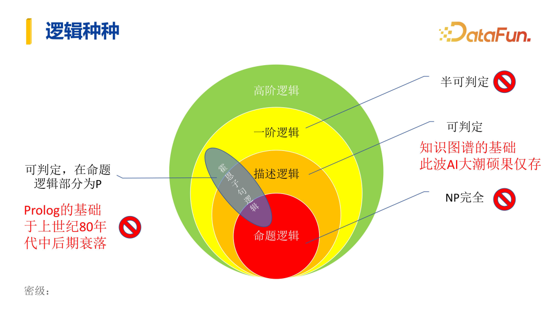 在逻辑推理中,上图中间橙色的圈是描述逻辑,也是现代知识图谱的基础。