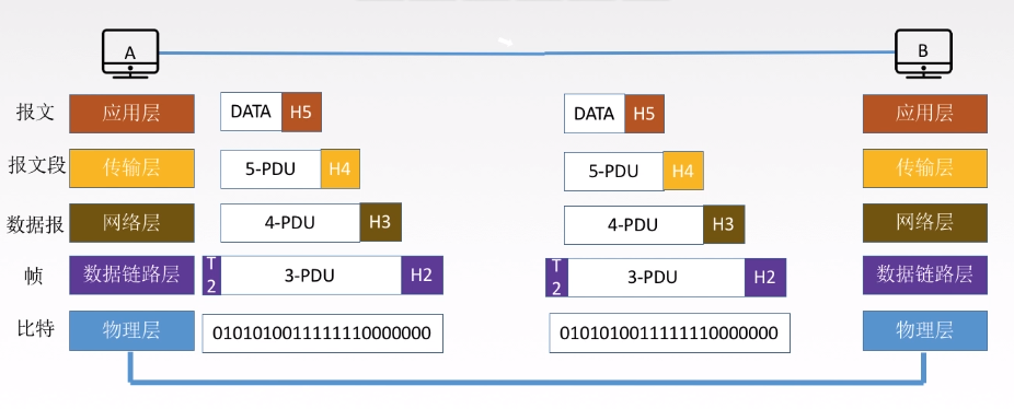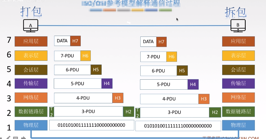 | 数据链路层 | 2 | 通信子网(数据通信) | T2--3---------------PDU |