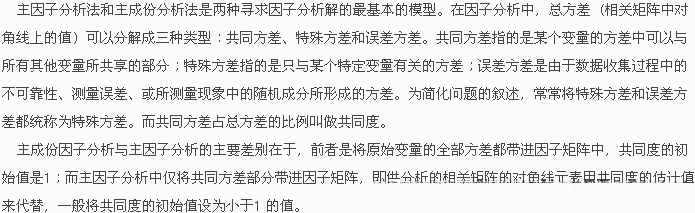 通过析取主成分显出最大的个别差异,也用来削减回归分析和聚类分析中变量的数目