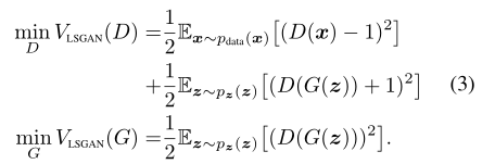 除了对齐数字和负数字的任务外,我们采用LSGAN [11]来训练模型,因为LSGAN能够生成更高质量的图像并稳定学习过程 。 对于对齐数字和负数的任务,我们采用常规GAN,因为我们发现常规GAN可以很好地完成此任务,而LSGAN有时无法对齐数字和负数的图像。 对于LSGAN,我们选择了a = -1,b = 1和c = 0的参数,这些参数已被证明可以最小化Pearsonχ2散度。 然后将公式1替换为以下公式: