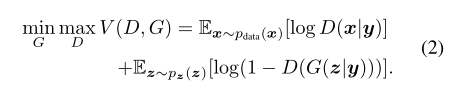 条件GAN引入了额外的信息y,其中鉴别器和生成器均以y为条件。 可以将条件GAN的目标表述如下: